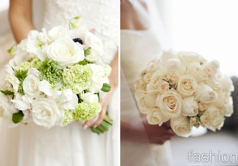 "Engana-se quem pensa que o buquê branco deixa o visual da noiva apagado. Ele passa uma imagem sofisticada, de muita elegância. A base pode ser decorada com fitas, tecidos rústicos ou apliques de joias. Não tem como errar", afirmou a wedding planner Edna Mota.