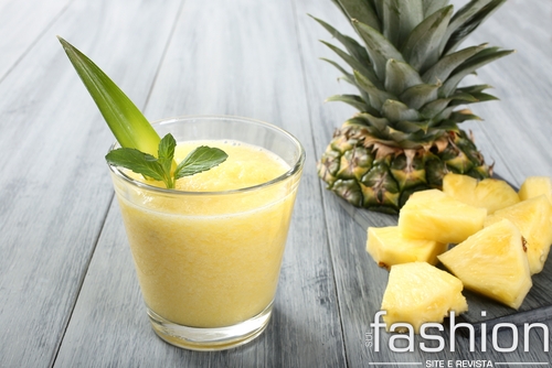 O abacaxi ajuda no emagrecimento ou quando a manutenção do peso ideal faz parte de um estilo de vida. A vitamina dessa fruta tem sabor diferente com iogurte natural e um pouco de melno lugar do leite. Adicione um pouco de suco de laranja para evitar que a vitamina fique muito espessa.