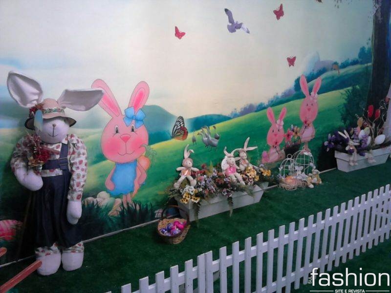 Uma bela decoração alusiva à data já está montada no espaço em frente ao Cred Center, onde crianças e adultos podem tirar fotos ou aquela famosa “selfie” em frente à casinha, na paisagem ou com os coelhinhos.