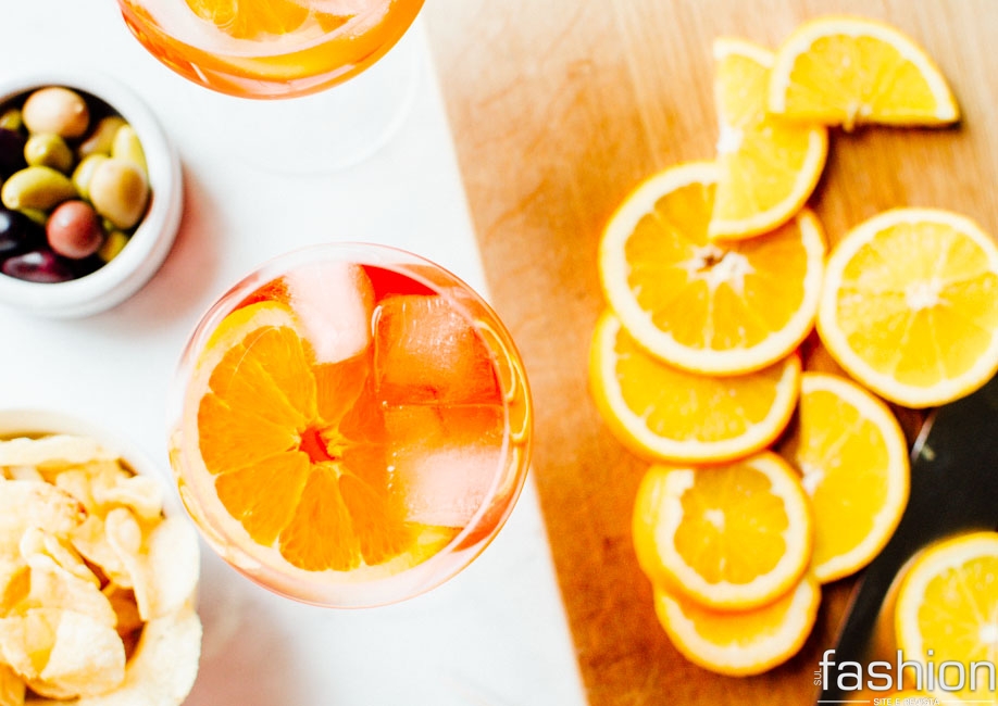 A receita não tem segredo… Basta misturar em um copo com gelo as doses de prosecco, Aperol e água com gás. Prontinho! depois é só decorar o copo com uma fatia de laranja e servir. Vai ser sucesso!! Anota aí os ingredientes: