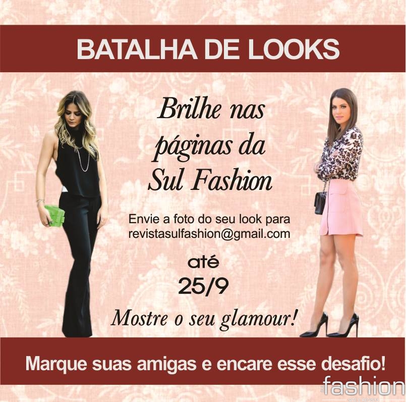 1. Capriche no Look e faça aquela foto especial2. Mande sua foto para o nosso e-mail: revistasulfashion@gmail.com com o título "Batalha de Looks"