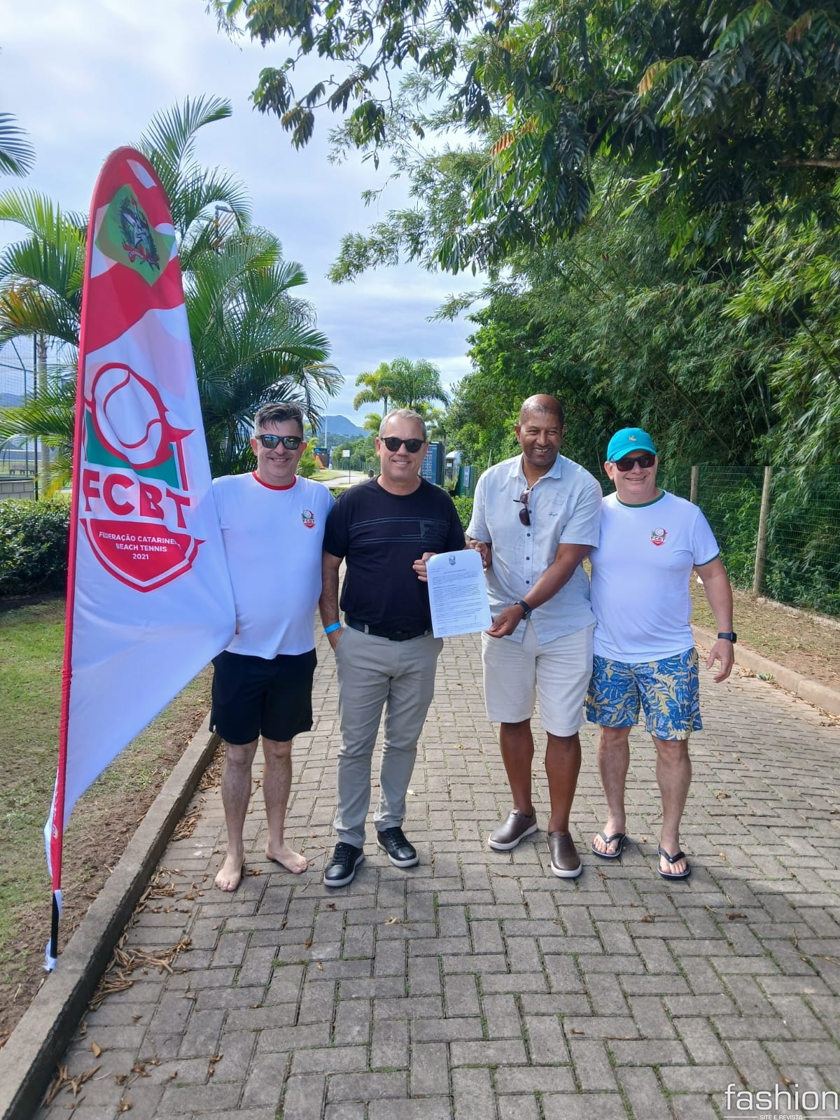 Neste domingo, 20, estiveram reunidos o Presidente do Grêmio Fronteira, Evandro Conceição, o Diretor de Esportes do clube Professor Nico, Rogério Ribeiro, árbitro da FCBT (Federação Catarinense de Beach Tennis) e o Presidente da Federação, Nelson Alves Pereira. O encontro aconteceu na Arena Surfland Brasil em Garopaba, na etapa do circuito catarinense de Beach Tennis, que tem pontuação válida para o Circuito Brasileiro.