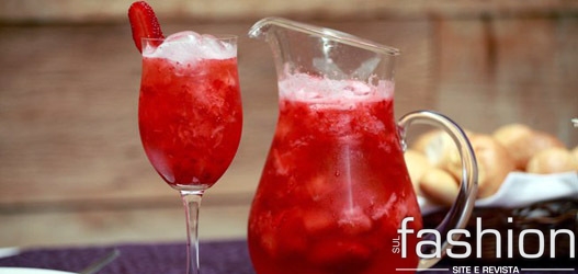 Macerar levemente os morangos na própria jarra, misturar o açucar e o gelo. Complete com prosecco e decore as taças com morangos. (Camila Padilha)