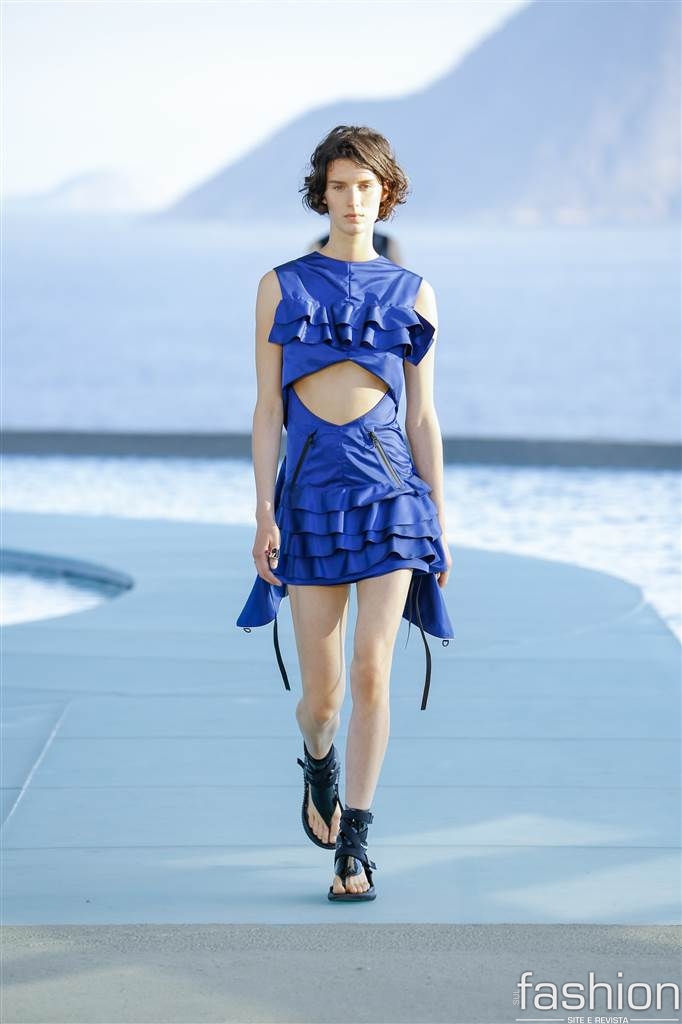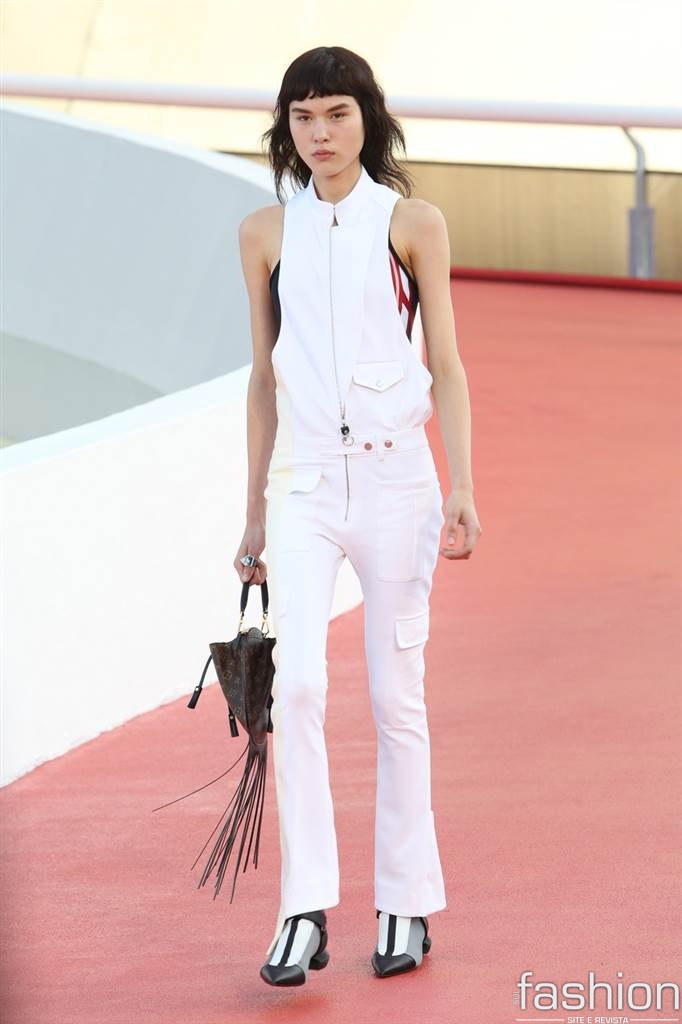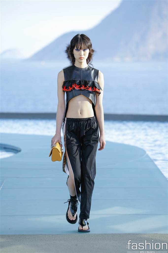 Nicolas Ghesquière apresentou uma coleção nada literal sobre o Brasil, misturando logos, esporte e modernismo. Brincou mais com babados que de costume, numa interpretação livre de sua menina do Rio.
