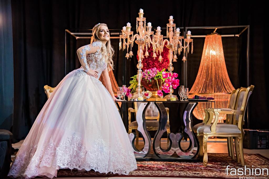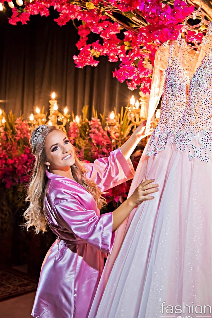A dupla Jonatan Castelan e Eduardo Alves, da JC Lustres e Décor, ousando e quebrando com o tradicional, no salão da SACC, compôs arranjos de mesas, enormes lustres, globos aéreas em lisiantus na cor pink que caiam sobre a sweet table, passarelas e até teto de led se espalhavam pelo cenário. Árvores de buganvile em vários tamanhos, muitas velas, candelabros e lounges energizaram e realçaram ainda mais a beleza da princesa Manoela.