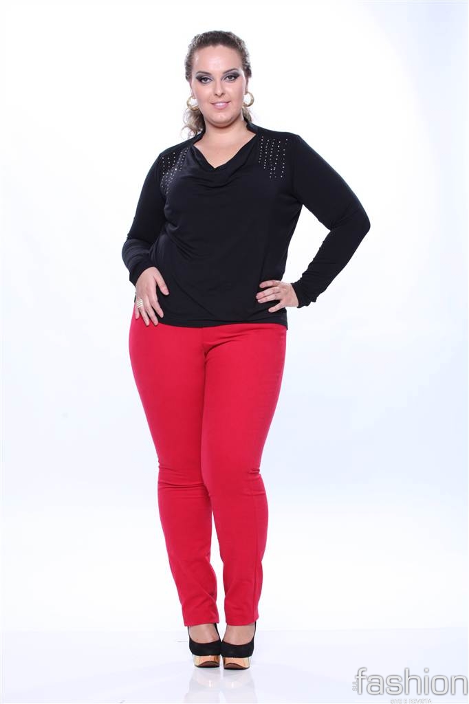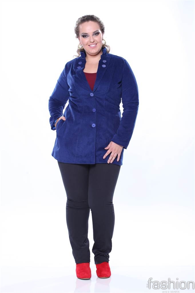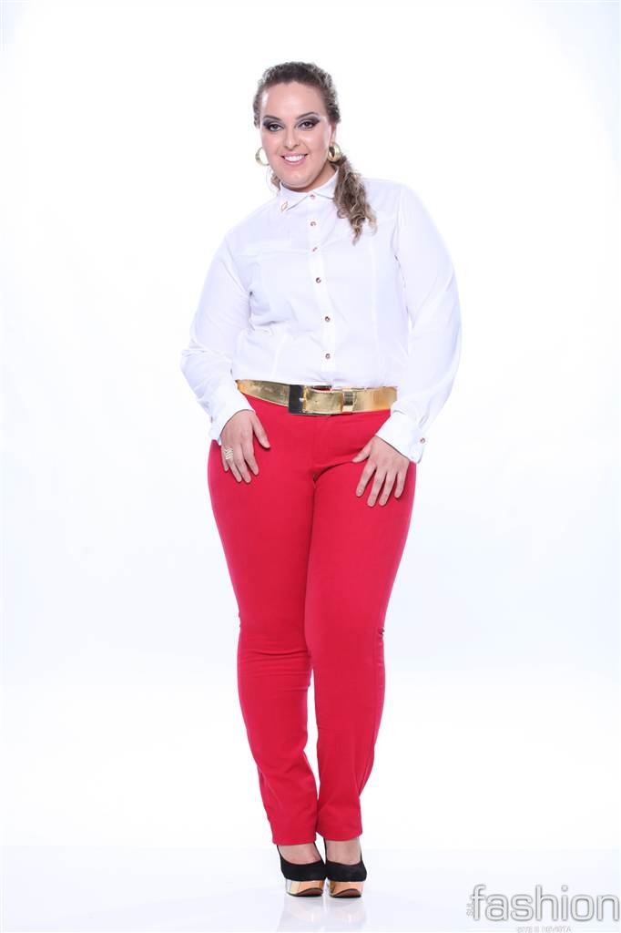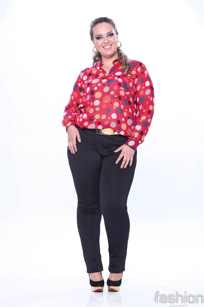 Para o manequim Pluz Size, outro mix de produtos Moça Bonita, as investidas para a temporada fria estão nos vestidos bicolores, camisas estampadas e em tecidos nobres que valorizem as curvas femininas.