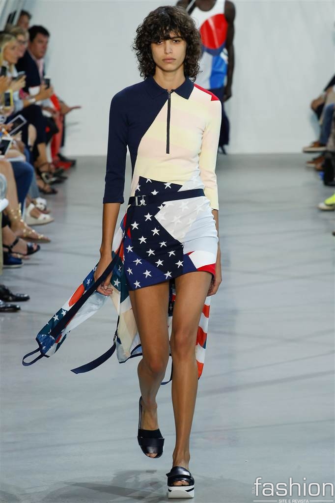Ralph lauren- Inspirando-se na moda navy junto ao “glamouroso espírito fresco da riveira francesa” como a própria grife descreveu, a coleção dá um fresh para o tom caramelo usado nas saias midi, batas e conjuntos apresentados, e indica os vestidos longos fluidos paralelos a tops e pantalonas para a noite .