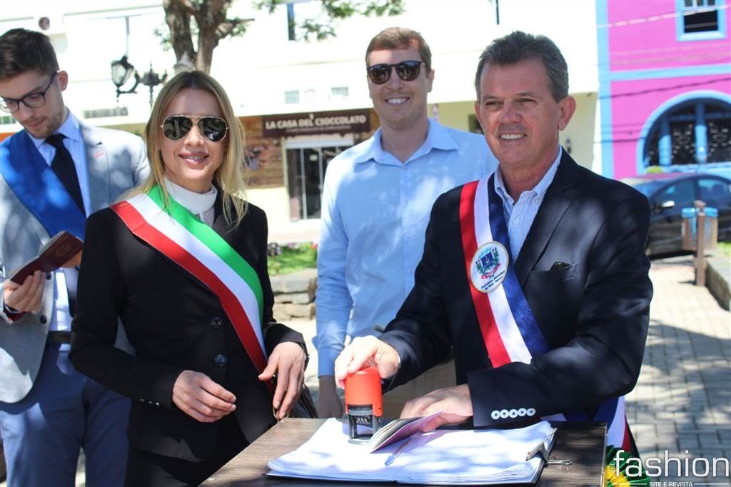 Na manhã desta segunda-feira, dia 19, foi realizado um ato de consolidação e cooperação bilateral entre Nova Veneza e Malo (Itália). O objeto do encontro é fortalecer o gemellaggio entre as duas cidades irmãs que irão assinar o acordo internacional acadêmico educacional. O momento iniciou com os hasteamentos das bandeiras brasileira e italiana. Logo após, o prefeito de Nova Veneza Rogério Frigo e a prefeito de Malo, Paola Lain descerram a placa do gemellaggio no pórtico de entrada da cidade acompanhados do vice-prefeito Sérgio Alberto Spilere, do Conselheiro da Provincia de Vicenza, Roberto Sette e o vereador Maurizio Cogo. A comitiva também aproveitou para fazer o registro do carimbo em visita a gôndola.