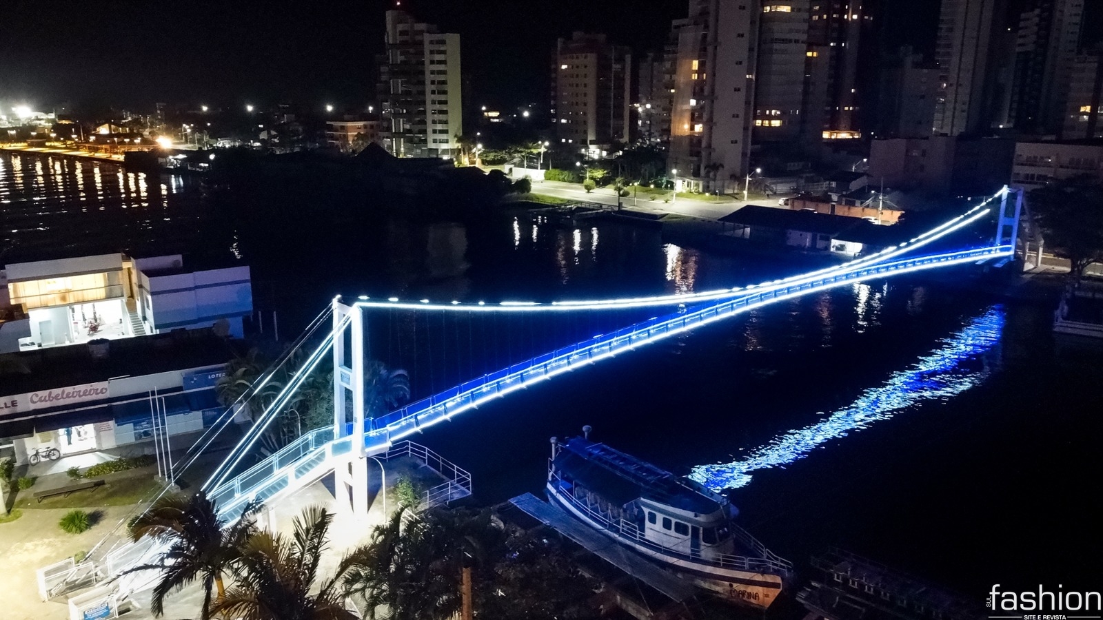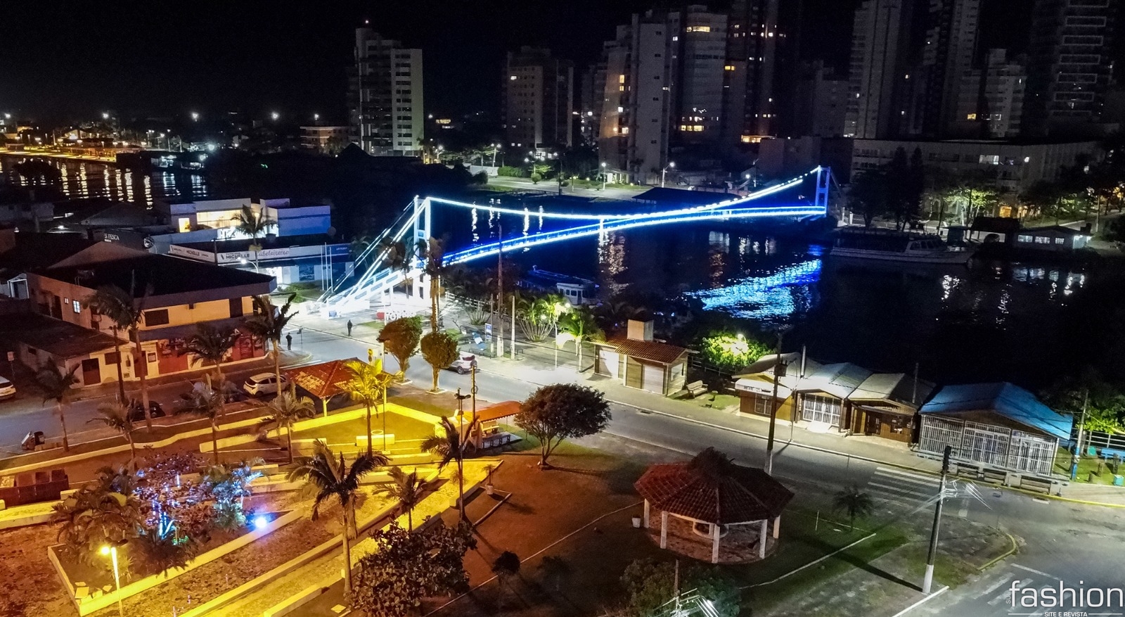 Passo de Torres ganha novo cartão postal com iluminação especial na Ponte Pênsil
