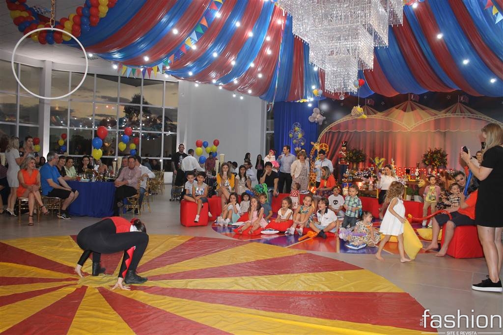 Palhaços, mágico, mímico e contorcionista, pipoca e picadeiro! Toda a alegria de circo foi parar no Rhóis centro de eventos para a comemoração do aniversário de 1 aninho do pequeno Antônio, filho de Catherine Pescador e do Deputado estadual Ricardo Guidi e super paparicado pelos avos paternos Ex deputado Altair Guidi e Samdra e pelos avós maternos os empresários Vânio Pescador e Chelsea. O baby ganhou mega festa tematizada, tudo idealizado pela mamãe com ajudinha das tias.