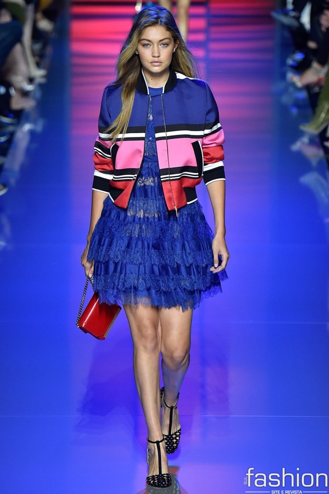 Eliesaab: Deixando de lado os vestidos de gala, pelos quais a marca e famosa, e usandos cores fortes e peças sport para quebrar a delicadeza das rendas, a grife mostrou uma coleção jovem e despojada, abusando das bomber jackets e de produções para variados tipos de ocasião.