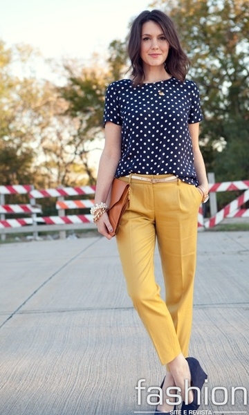 Tudo é uma questão de estilo, deste modo, combine sua blusa de bolinhas com aquele cardigã clássico, saltos e calça jeans do namorado ou opte por uma tradicional camisa de bolinhas com shorts de couro e meia-calça. O outono irá reinventar o poá de maneiras diversas, mas meu look favorito ainda é o de calças e camisa de bolinhas. Este é sem duvida um conjunto chique, ultra feminina e forte!