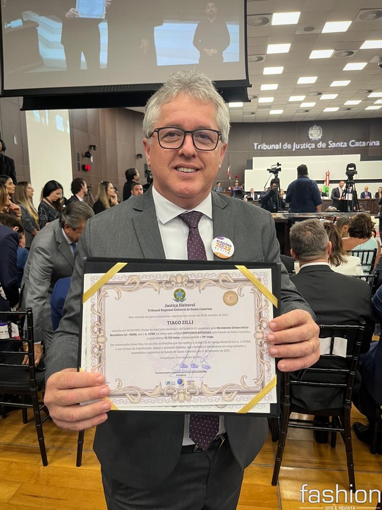 O Sul de Santa Catarina ganhou oficialmente um importante representante na Assembleia Legislativa. O empresário e ex-prefeito de Turvo, Tiago Zilli (MDB), recebeu ontem, segunda-feira (19), o diploma, que oficializa o resultado da eleição e dá direito a assumir o mandato, em 1º de fevereiro de 2022.