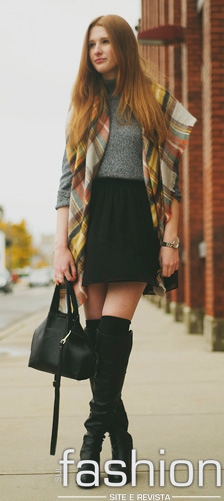 4- Usar com saia, bota over e jaqueta de couro? Nada mais trend!