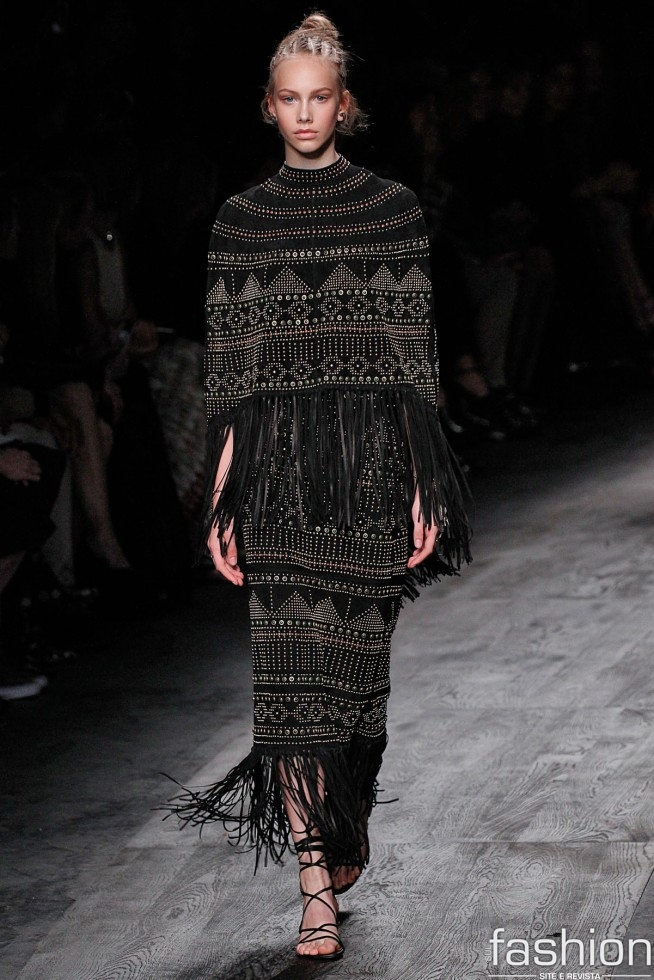 Além disso, as transparências e os detalhes nas barras das saias foram muito frequentes junto a decotes profundos e franjas levemente finas, compondo produções sofisticadas e singulares.