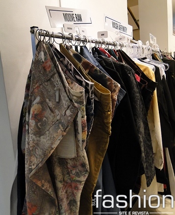 A coleção trouxe também os tecidos para camisaria, com sarja composta por fios 100% algodão, que garantem fluidez aos looks pelo peso leve do tecido. As cores vão do Black, overdye Black e Blue. Na linha printed, motivos geométricos e abstratos.