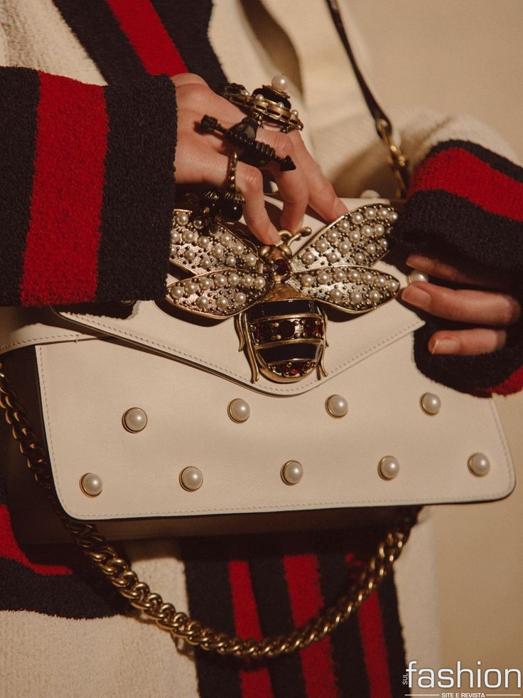 Nunca o bichismo esteve tão em alta na moda. Ou seria insetismo, talvez, abelhismo? Independente como vou nomear, a tendência chega forte no inverno e invade vitrines nacionais e internacionais. A Gucci já vem há algum tempo apresentando uma certa simpatia à esta espécie. Tenho visto desde 2015, na primeira versão em joias, o shape em peças variadas da marca.