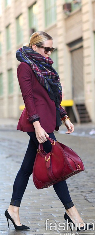 As produções em Marsala ficam ótimas com neutros, como cinza quente, mas também podem fazer conjunto com dourado, verde ou azul brilhante. E para você que curte roupas mais sóbrias, o tom é uma ótima alternativa para sair do little black.