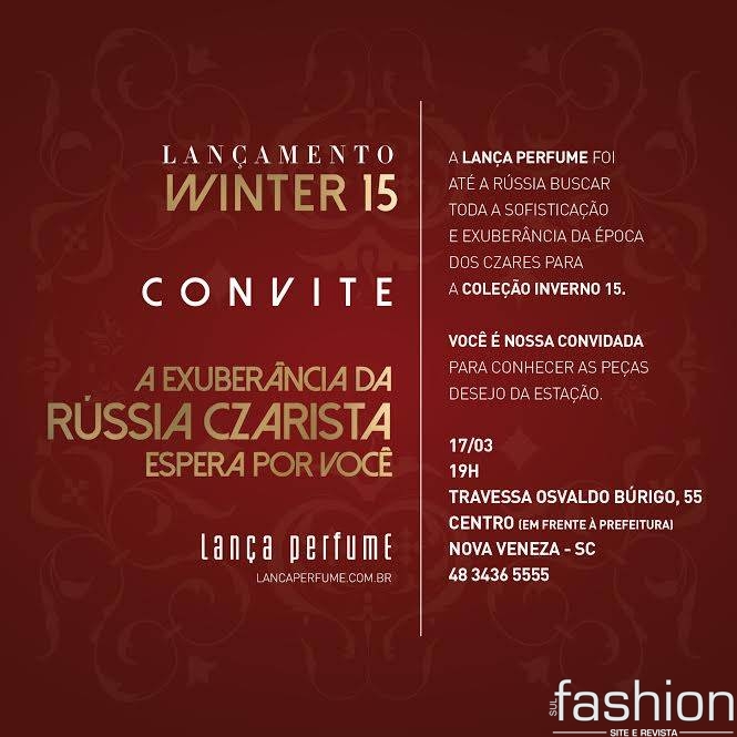 O poder e o luxo de um dos impérios mais imponentes da história serão revelados na próxima terça-feira, 17, no lançamento regional da coleção Winter 2015 Lança Perfume (LP), inspirada na Rússia Czarista. O encontro fashion, aberto ao público em geral, terá início às 19 horas, no Outlet LP, no Centro de Nova Veneza.
