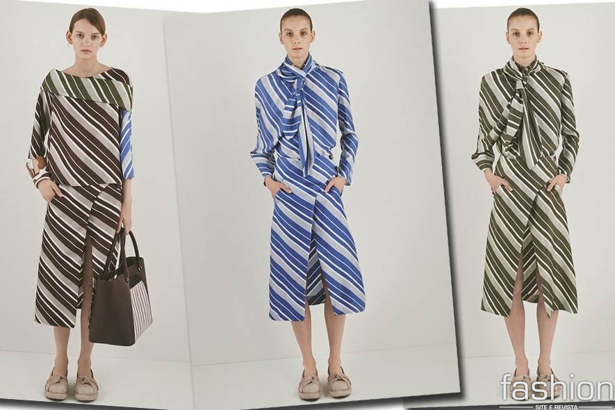 Para as mais contidas e que não querem usar um look total com a padronagem, vale olhar para a proposta da Lanvin com largas listras ou as peças a la Proenza Schouler.