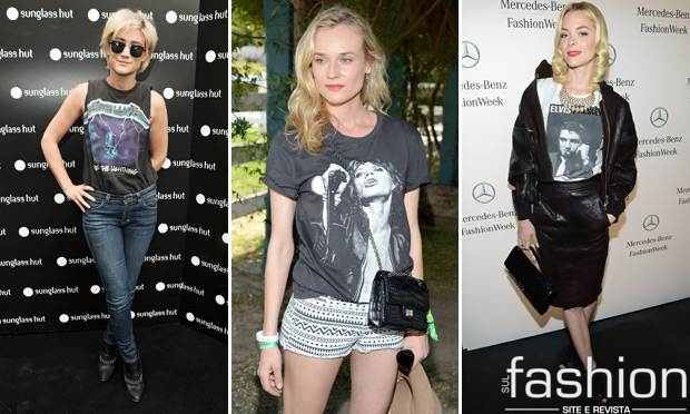 T-shirt - As famosas t-shirts sempre fizeram sucesso, principalmente entre o publico mais jovem, e hoje é indispensável no guarda-roupa feminino. Os looks compostos com ela são despojados e modernos, não é atoa que as camisetas estão fazendo o maior sucesso nas passarelas e entre as famosas.
