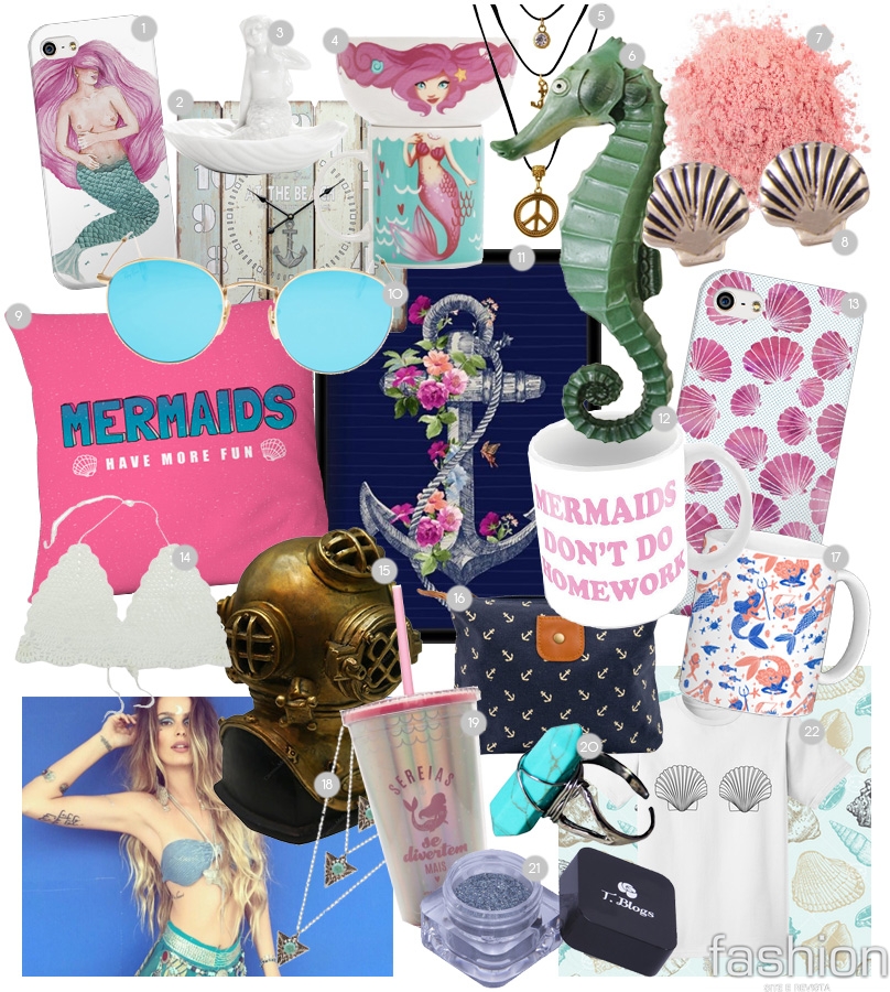 Pronto: virou sereia por dentro? Agora vamos trabalhar a parte de fora: basta combinar elementos, usar acessórios inspirados na moda boho, se jogar no glitter e, bom, brilhar assim como esta criatura mágica do mar! Para entrar de vez nesta onda (hehe), fizemos uma lista de compras de moda, acessórios, decoração e outros itens inspirados nessa vibe tão boa. Vamos ver?