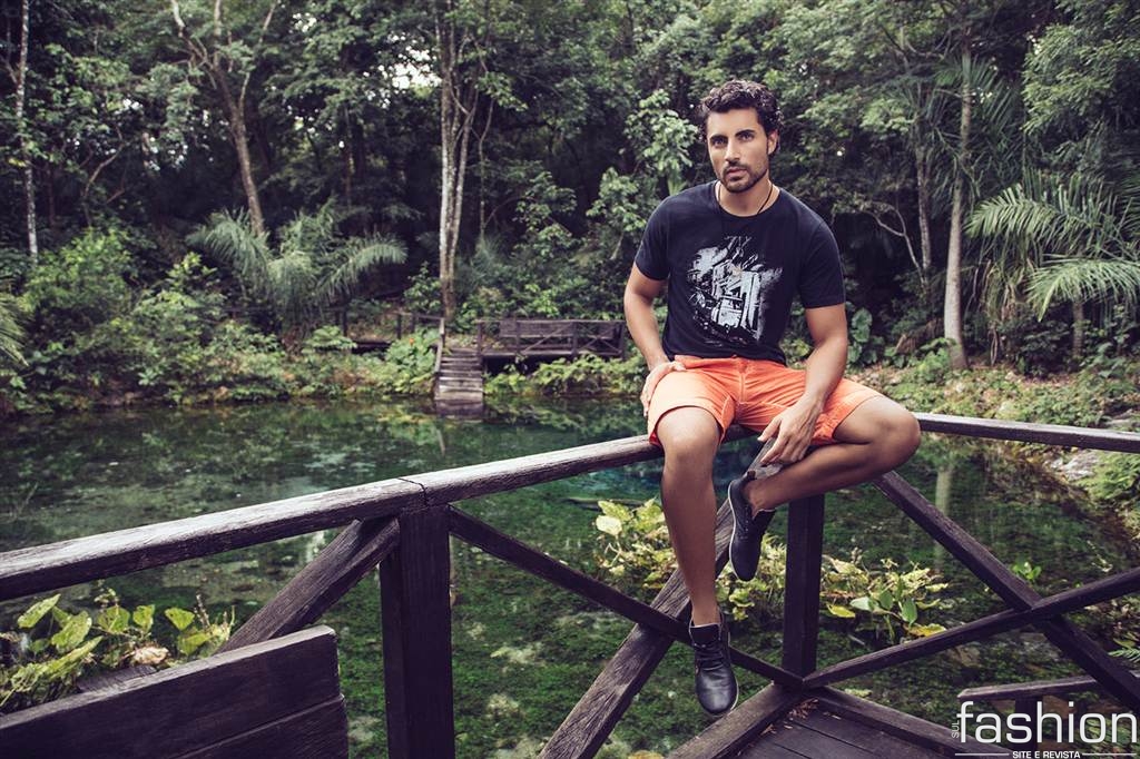 Os homens também podem aderir à moda. As bermudas coloridas, assim como acessórios, camisetas e sapatos em tons vibrantes, também são tendência para o público masculino. Então os homens modernos podem e devem colocar muita cor no visual.