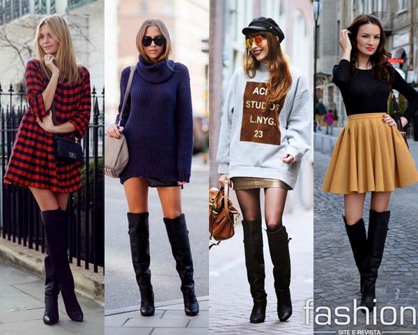 Bota over the knee (cano longo): A queridinha do inverno 2014 continua com tudo! Depois de fazer muito sucesso no ano passado, esta bota está mais difundida entre o grande público, ou seja, será cada vez mais comum ver estas belezinhas desfilando pelas ruas.