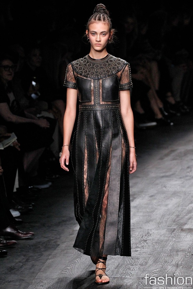 Além disso, as transparências e os detalhes nas barras das saias foram muito frequentes junto a decotes profundos e franjas levemente finas, compondo produções sofisticadas e singulares.
