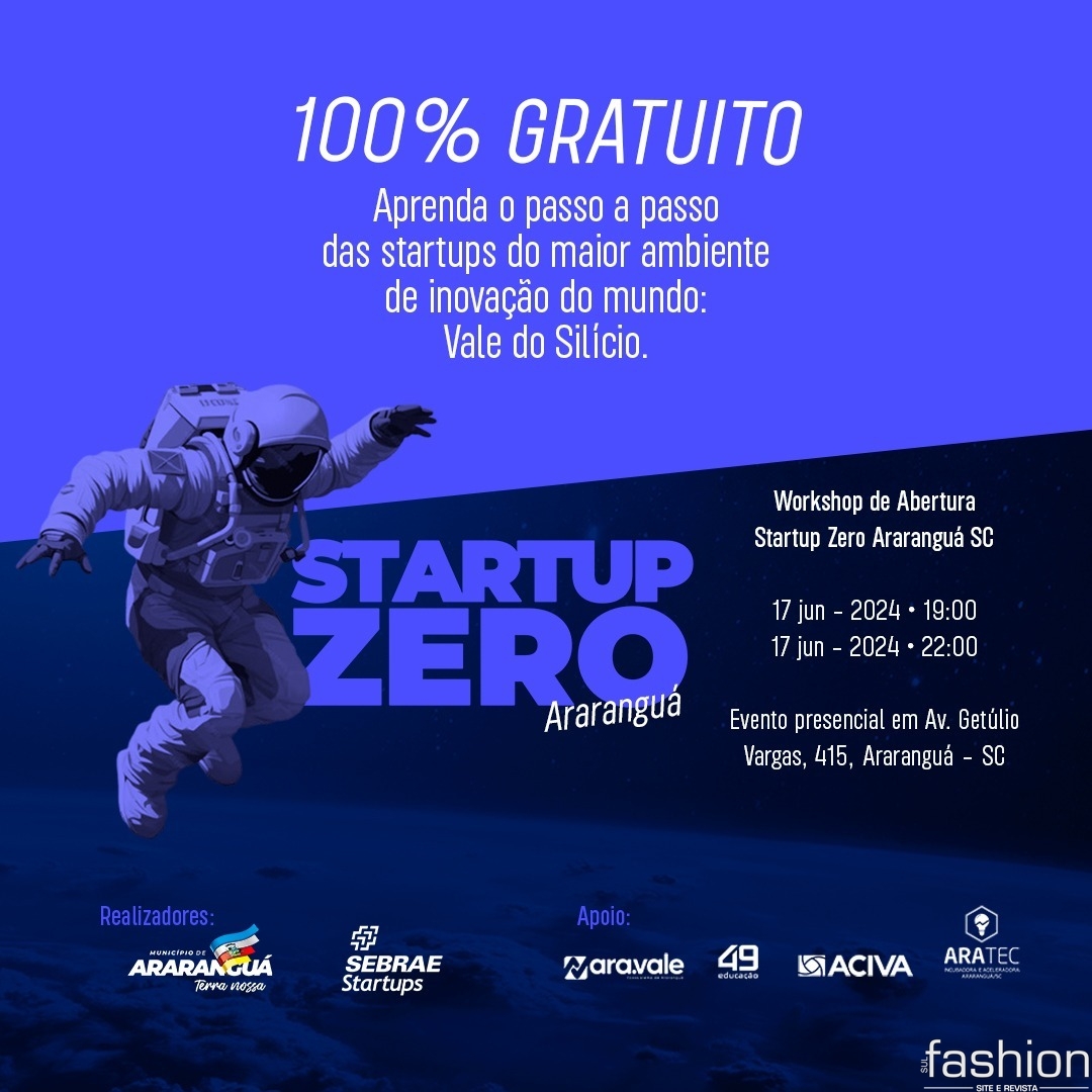 O Startup Zero é um programa 100% gratuito para acelerar o seu negócio. Você terá acesso a conteúdos exclusivos, aulas ao vivo, oficinas presenciais e demo day com investidores especializados. E para começar o programa com o pé direito, preparamos um grande evento presencial que será realizado no dia 17, às 19h na sede da ACIVA (Av. Getúlio Vargas, n° 415)