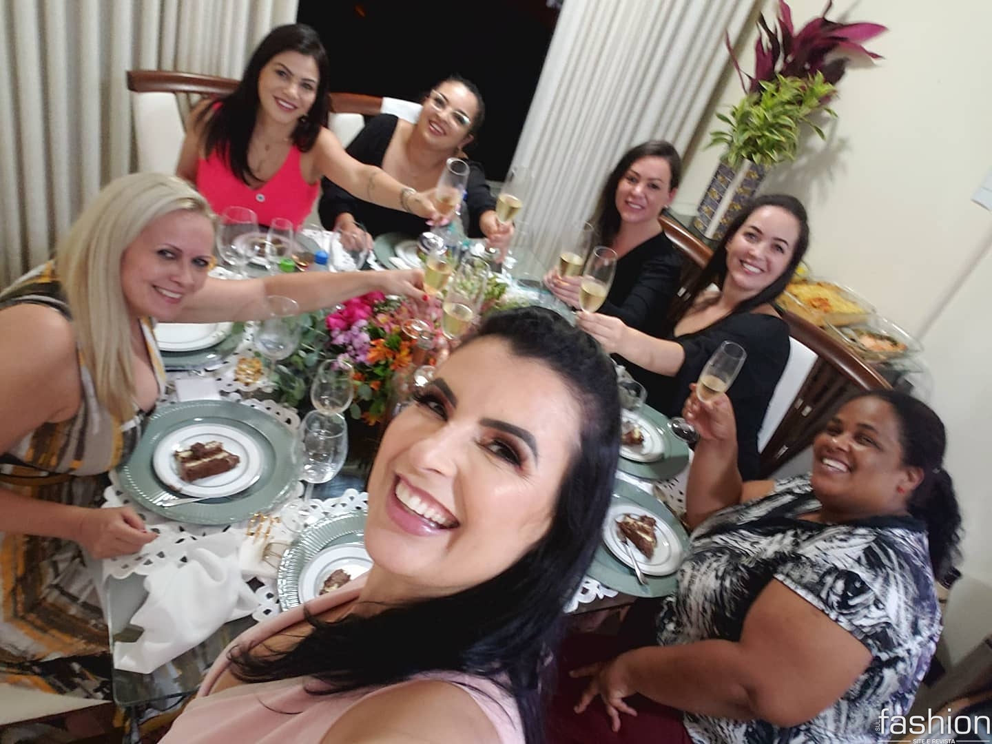 Carla Davila, Mariane Mariot, Letiele Furlan, Emanuelle Telles e Luana Goulart estiveram presentes no jantar oferecido por Cleide. A chef Renata Gomes foi quem preparou o cardápio da noite, que também teve decor de Gean Marcos, da Lírio do Vale Decorações.