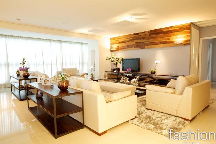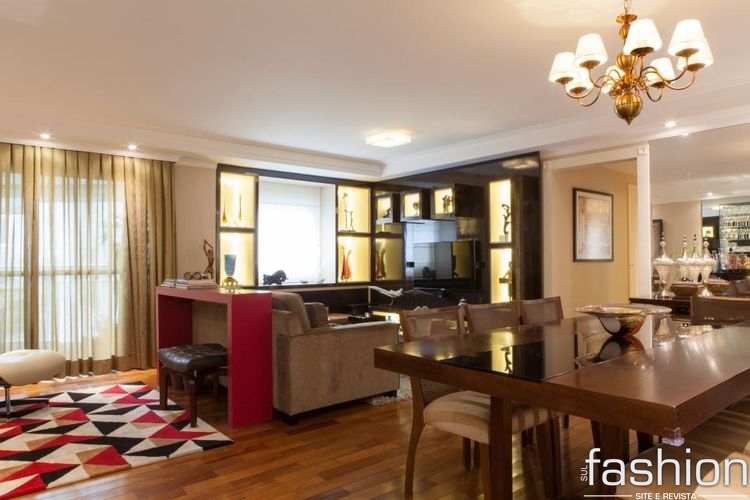 As salas integradas com outros ambientes como sala de jantar, cozinha ou escritório, devem ter elementos de decoração similares para que o ambiente ao todo seja harmônico e acolhedor.