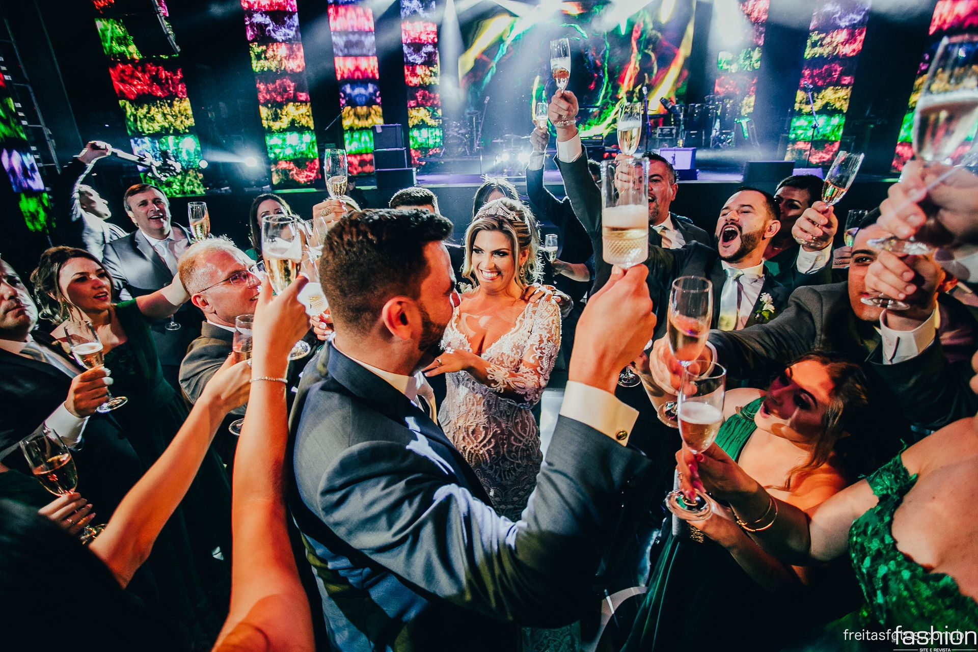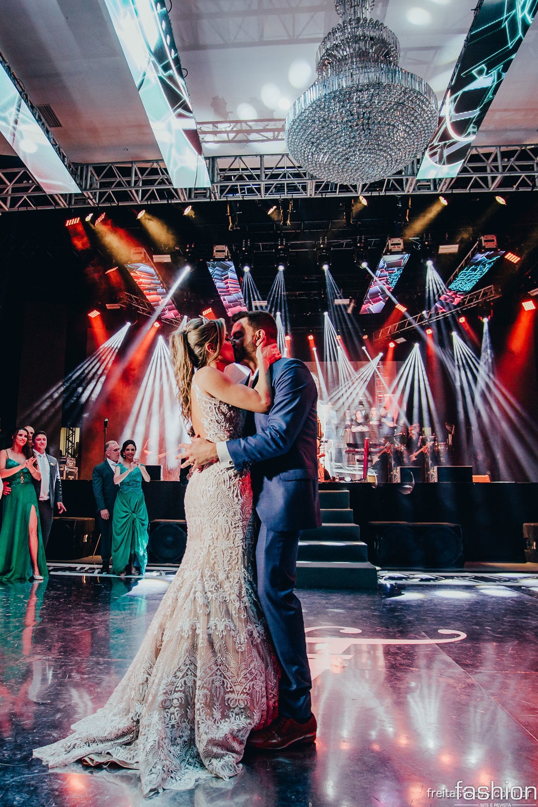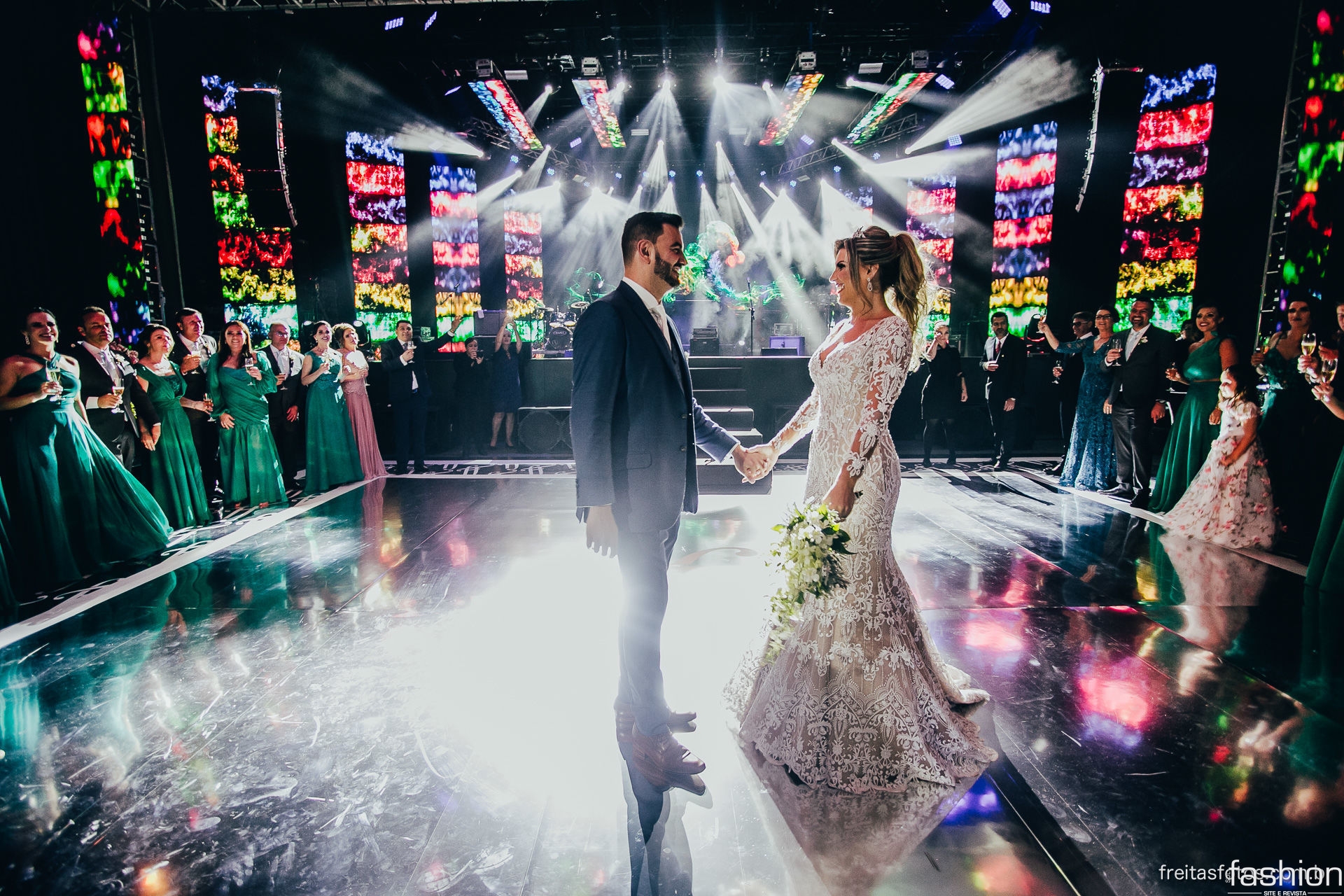 A noiva, no seu dress sereia, assinado por Luhana Pawlick, esbanjou elegância e, sob o toque dos clarins e marcha nupcial, foi conduzida pelo pai, Carlos Amorim, atravessando a nave espelhada contornada por arcos de flores brancas, ao encontro do seu príncipe, o amor de sua vida, o qual o destino se encarregou de unir. Uma noite espetacular, com atrações nacionais como os sertanejos João Neto e Frederico, os manézinhos do Dazaranha e Neguinho, segurou os amigos até o amanhecer do domingo, numa festa regada a bom espumante, drinks da Drinkit, serviço gastronômico impecável e muita energia boa rolando enquanto o renomado e experiente fotógrafo internacional Fernando Freitas, registrava cada detalhe e, quase que simultaneamente, as reproduzia para o imenso telão no palco.