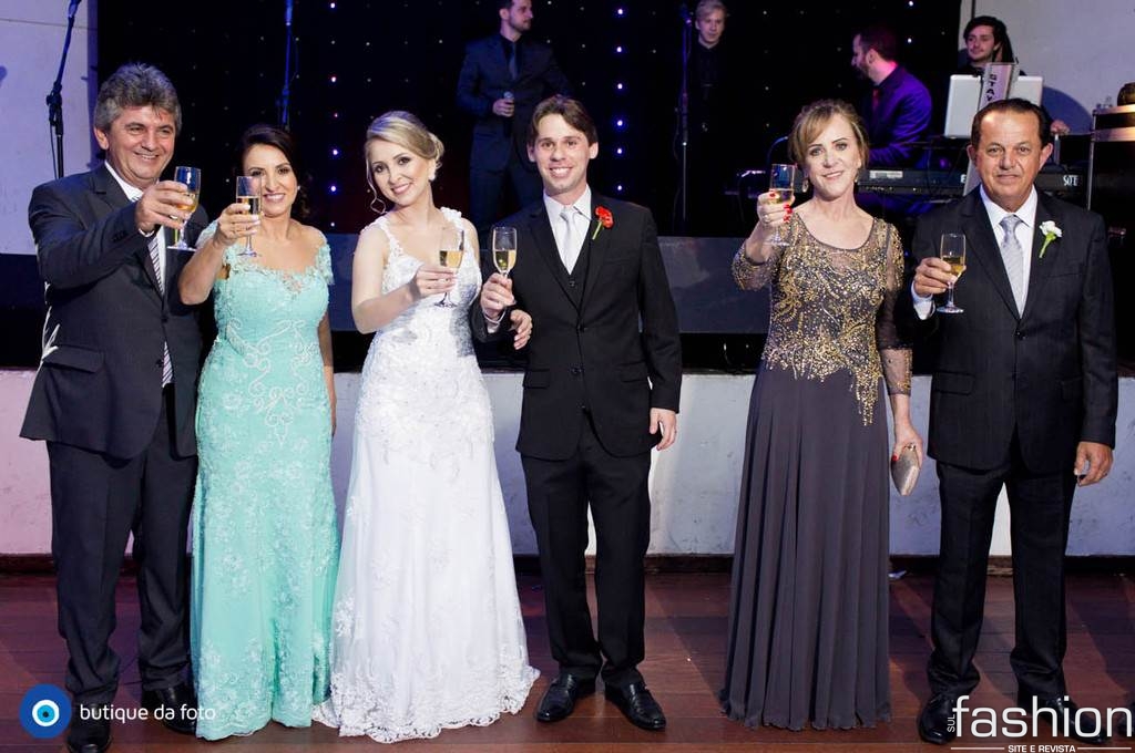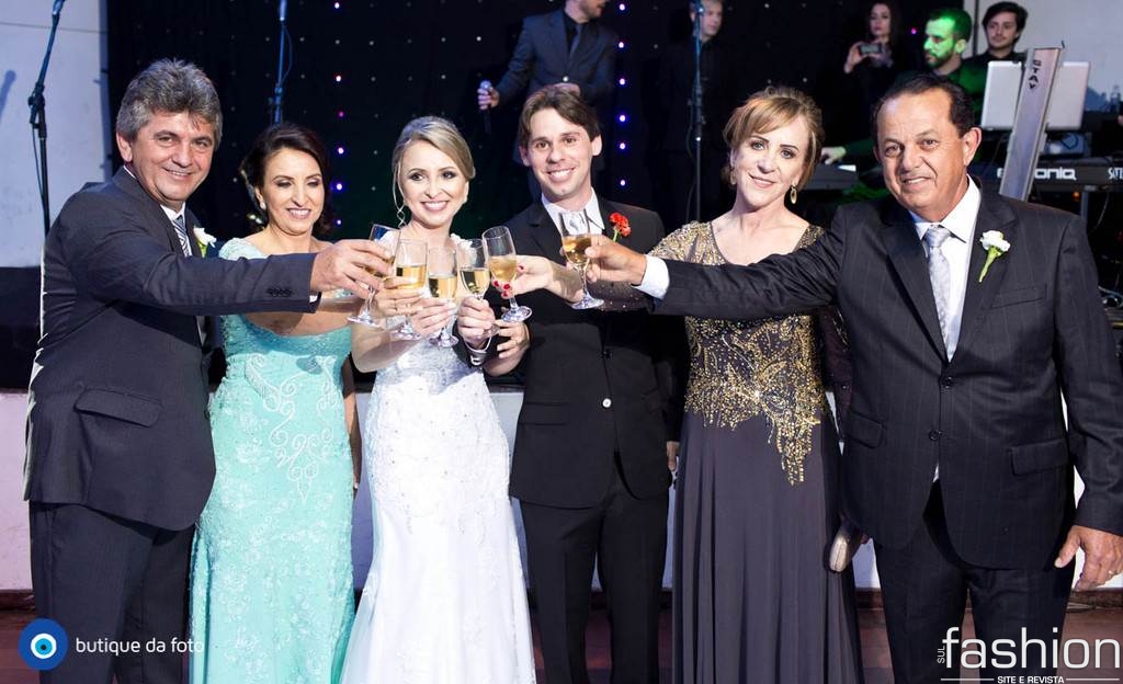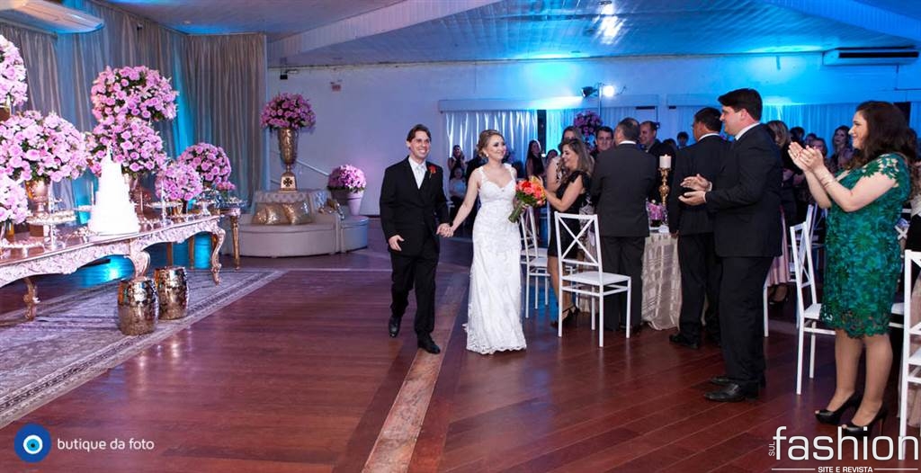 Sob chuva de pétalas brancas, o recém-selado elo de amor despede-se da igreja para ser comemorado com os convidados no Grêmio Fronteira. E Se na capela o sentimento predominante foi a emoção, o espirito festeiro e animado da família falou mais alto e com uma divertida coreografia junto aos pais e padrinhos, deu-se o start para a grande noite.