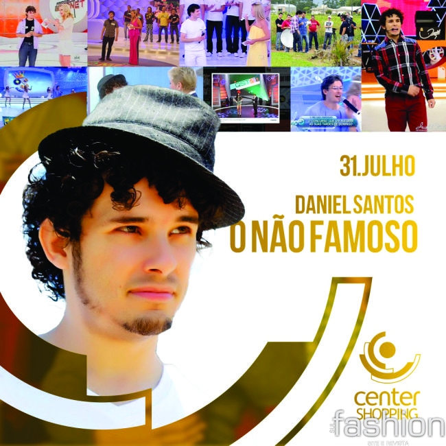 Do interior de Meleiro para o mundo inteiro. Daniel Santos é conhecido mundialmente com suas paródias, comentários musicais e vídeos caseiros que produz para o site de conteúdo audiovisual Youtube, com o canal “O Não Famoso”. E neste domingo, dia 31, ele vai estar no Center Shopping Araranguá, a partir das 20h, com um show de humor imperdível.