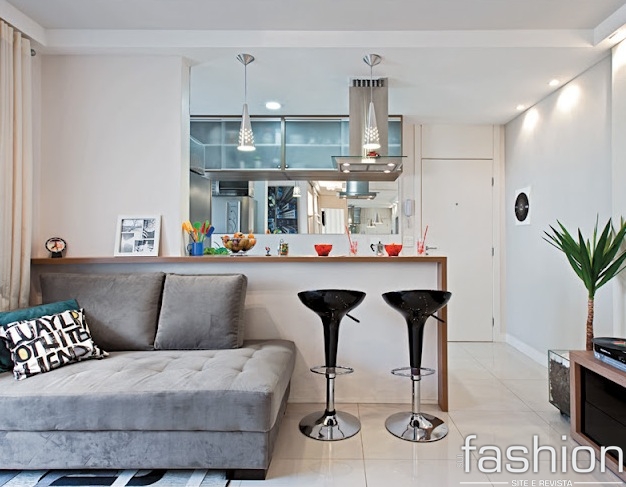 Aqueles módulos brancos para organização, que podem ser encontrados facilmente em lojas de artigos para o lar, podem dar um ar bem charmoso à sua casa. Aparentemente eles parecem bem sem graça, mas empilhados tornam-se uma versátil mesinha de canto, com espaço para um abajur e fotos na parte superior. Nas divisórias você pode colocar revistas e objetos de decoração.