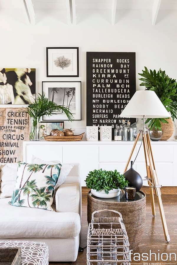 Para deixar a casa com toques tropicais, aposte em itens como almofadas estampadas com folhagens ou flores, vasos e arranjos coloridos e objetos de decoração em formato de frutas e animais. Como esses itens serão o destaque do ambiente, equilibre-os com cores neutras e tenha cuidado com a mistura de estampas, que poderá carregar o visual. Especialmente em ambientes pequenos, aposte em itens com personalidade e não deixe de lado as folhagens e flores naturais, que sempre deixam o ambiente mais aconchegante.