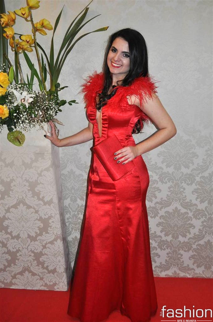 Inspirada nas tendências do mundo da moda e respeitando o estilo, a preferência e o biotipo de suas clientes, a estilista apostou nas plumas, bordados com pedrarias e transparências nos profundos decotes nas costas.