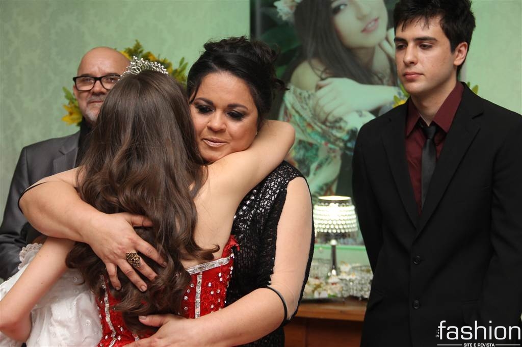 Noite inesquecível e mágica para a doce aniversariante Elisabeth S. Ribeiro, que comemorou 15 anos com linda festa, no Jardim Itália, em Meleiro-SC. Emocionados, os pais e irmãos esperavam a princesa Elisabeth, que chegou linda vestindo red dress e carregando nos braços sua boneca preferida, atravessou o salão com largo sorriso e sob o forte aplauso dos convidados, entregou o brinquedo à mãe, Ivania Nascimento da Silva, da qual a recebeu com um abraço apertado e cheio de amor. As lágrimas de Ivania expressavam o forte sentimento de alegria e orgulho por debutar sua menina, que agora inicia uma nova fase, tornando-se mulher. A fada madrinha da sorridente aniversariante, Nani Kerber, deixou suas palavras à Elisa, "Me sinto feliz em poder acompanhar e participar desse momento tão especial na vida da nossa princesa, e ainda mais, de ser sua madrinha", declarou.