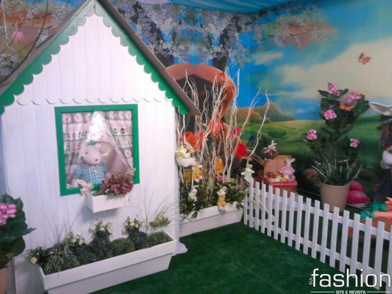 Uma bela decoração alusiva à data já está montada no espaço em frente ao Cred Center, onde crianças e adultos podem tirar fotos ou aquela famosa “selfie” em frente à casinha, na paisagem ou com os coelhinhos.