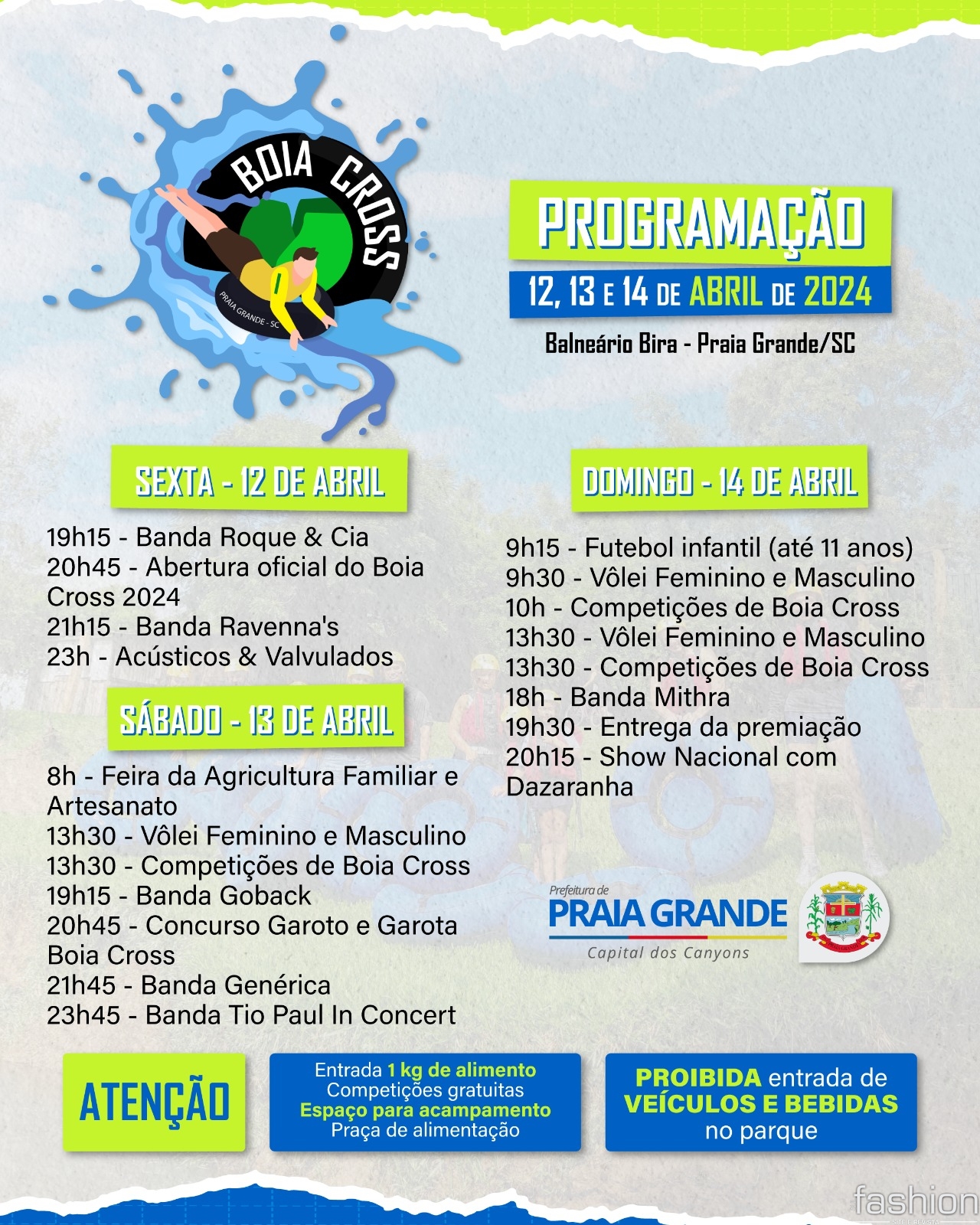 Haverá competições em 17 categorias, além de outras modalidades esportivas como vôlei e futebol. Ainda serão escolhidos o Garoto e Garota Boia Cross no sábado (13). A estrutura conta com área para camping e praça de alimentação.