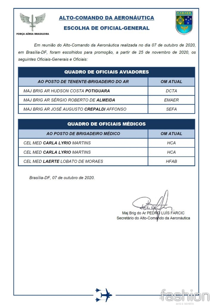 Carla admitiu a direção do Hospital Central da Aeronáutica (HCA), ainda em abril deste ano. Além disso, a Tenente-Brigadeiro Carla Lyrio Martins já havia sido a primeira mulher comandante de uma unidade da FAB (Força Aérea Brasileira). Segundo o portal do Ministério da Defesa, a Brigadeiro Médica fará parte da unidade da Diretoria de Saúde da Aeronáutica. 07 de outubro de 2020 entra para a história da Força Aérea Brasileira com sua primeira Oficial Feminina a ocupar o posto de Brigadeiro (Oficial General).