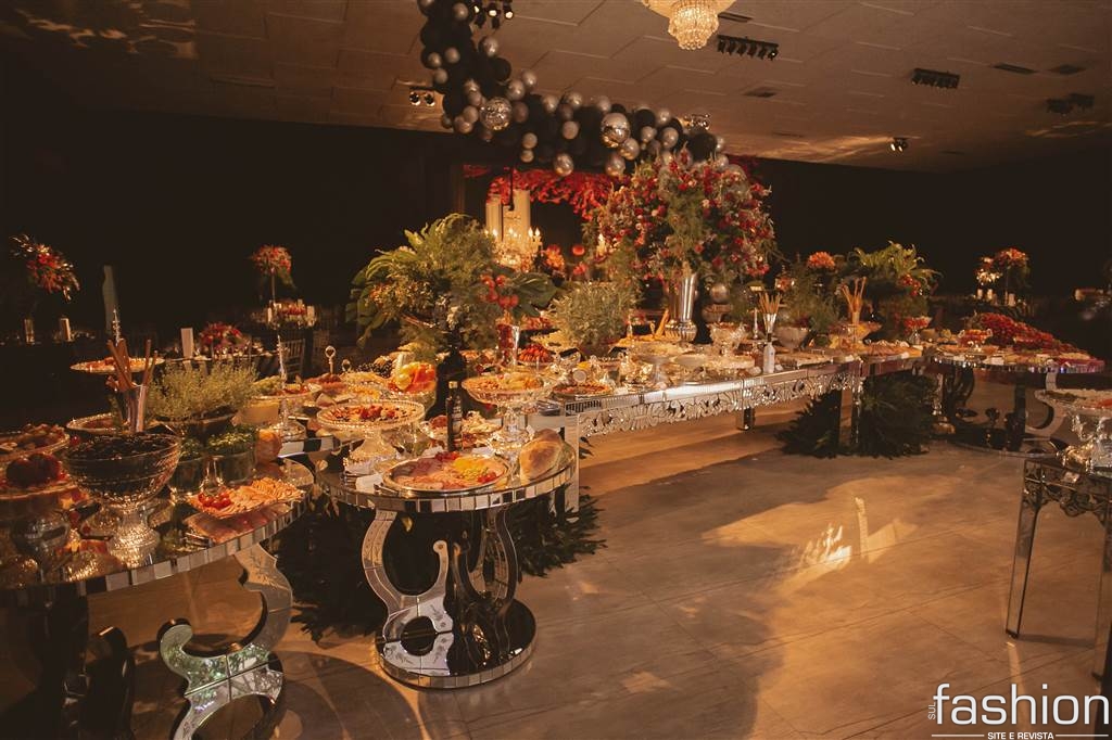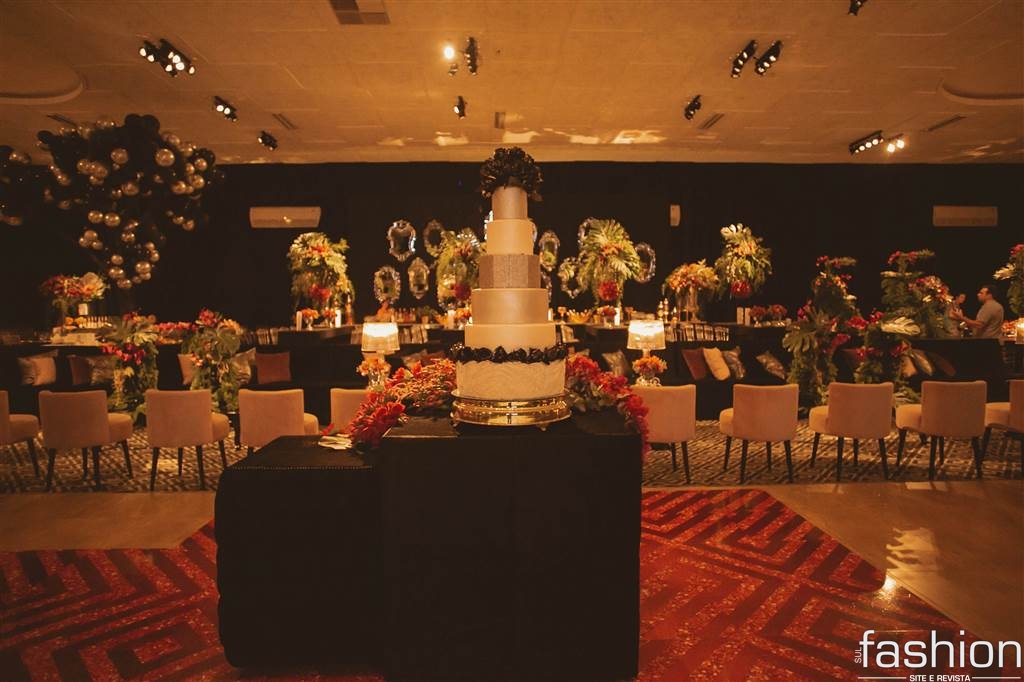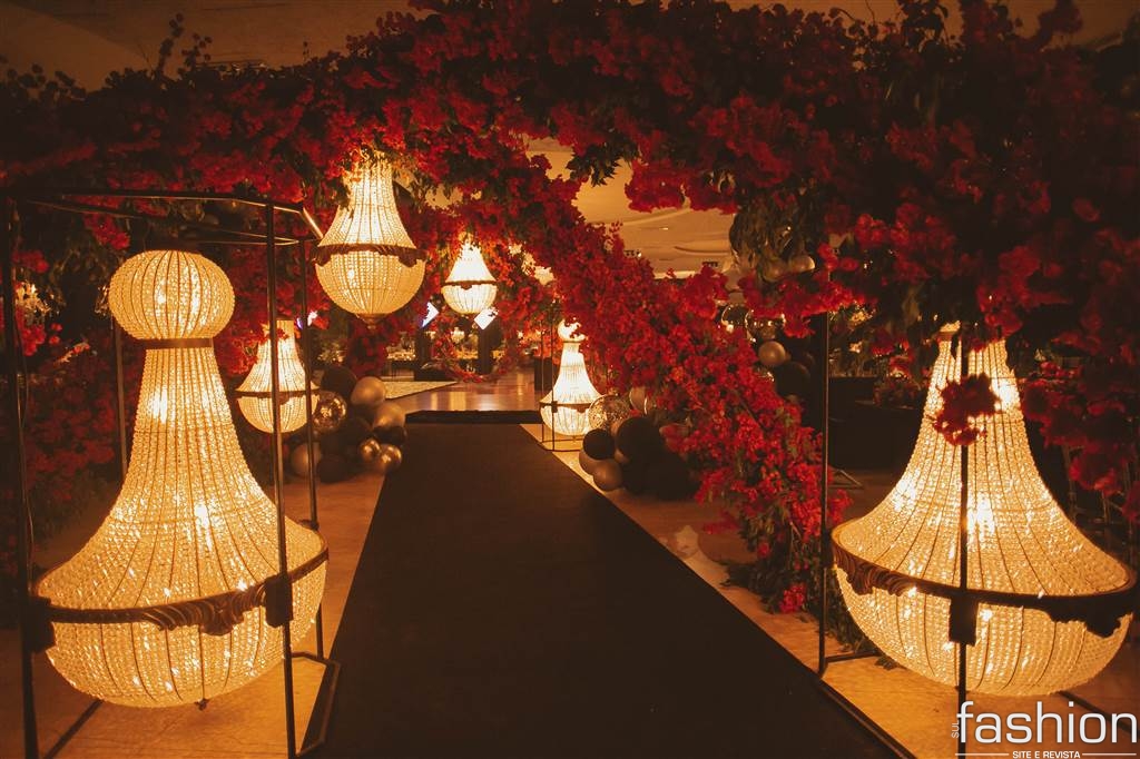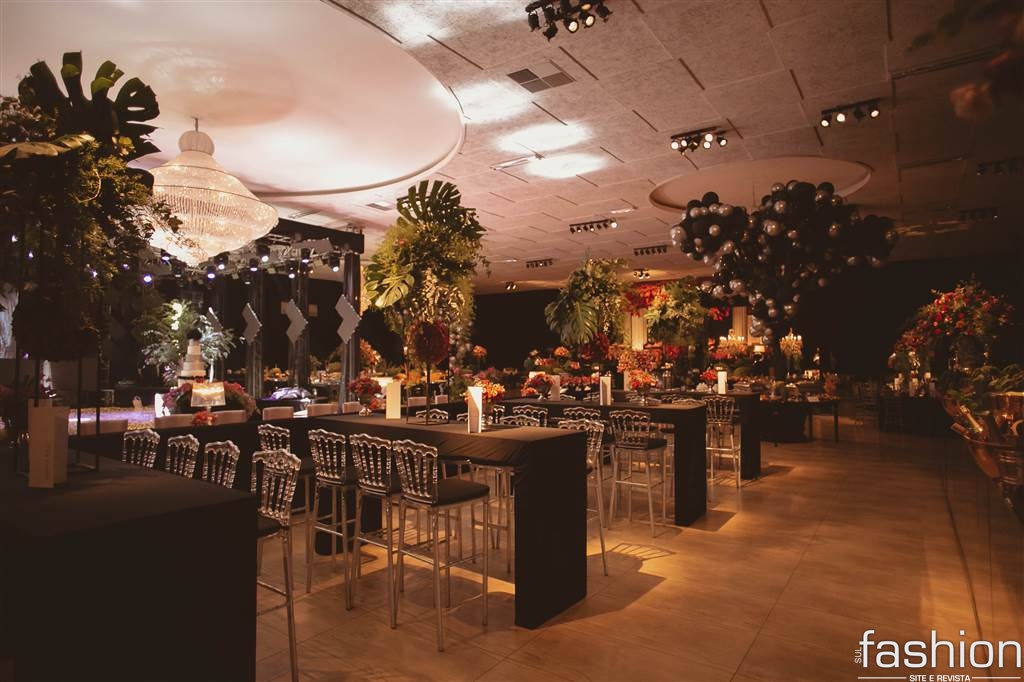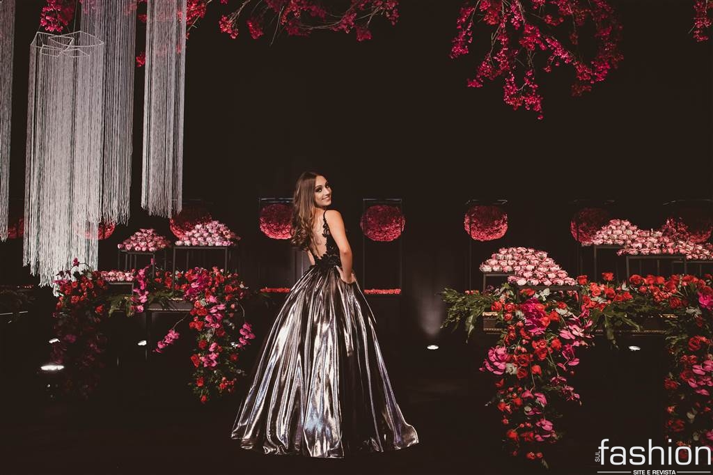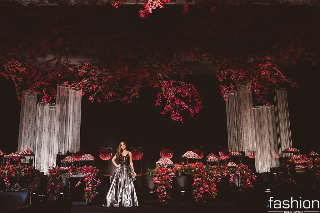 Todo o esplendor do salão pensado especialmente para a aniversariante, desde o jardim/ sala de doces, flores e esculturas suspensas contrastando perfeitamente entre o moderno e o romântico, estrutura de pista/painel led e o show da Cantora Liz Cardoso num mix de estilos, para os amigos e familiares presentes na mágica noite da Daiane Rigo.