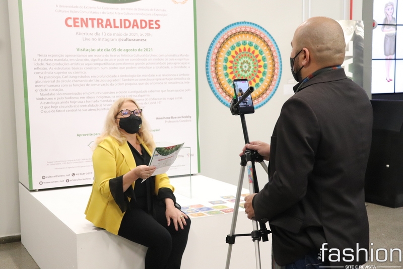 O Bloco Administrativo da Unesc, mais especificamente o Espaço Toque de Arte, ganhou nova vida nesta quinta-feira (13/5). Isso porque foi aberta oficialmente a exposição Centralidades, proposta do Setor de Arte e Cultura da Universidade. O trabalho de curadoria das peças, escolhidas entre o acervo da Instituição, ficou por conta da coordenadora do Setor, Amalhene Baesso Reddig, responsável também pela apresentação da exposição em transmissão ao vivo pela página @culturaunesc.