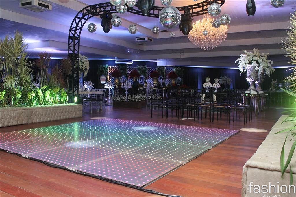 Trazendo ar romântico com toques de paixão veneziana aliada à modernidade dos light effects para a cerimônia e na recepção, com belíssimos arranjos florais, lustres e candelabros em critais, passarela espelhada, velas, espelhos e mesas venezianas, o clube se transformou para receber os 180 convidados do casal.