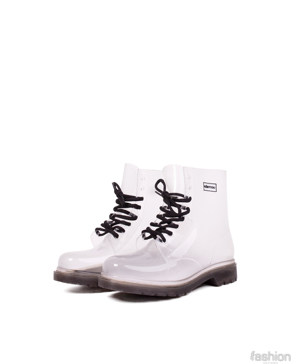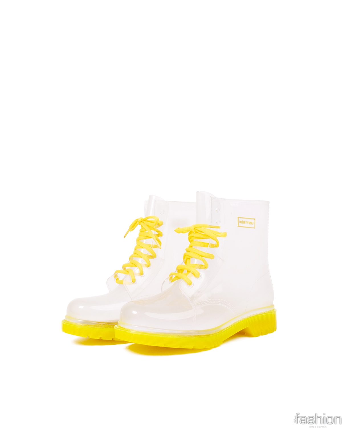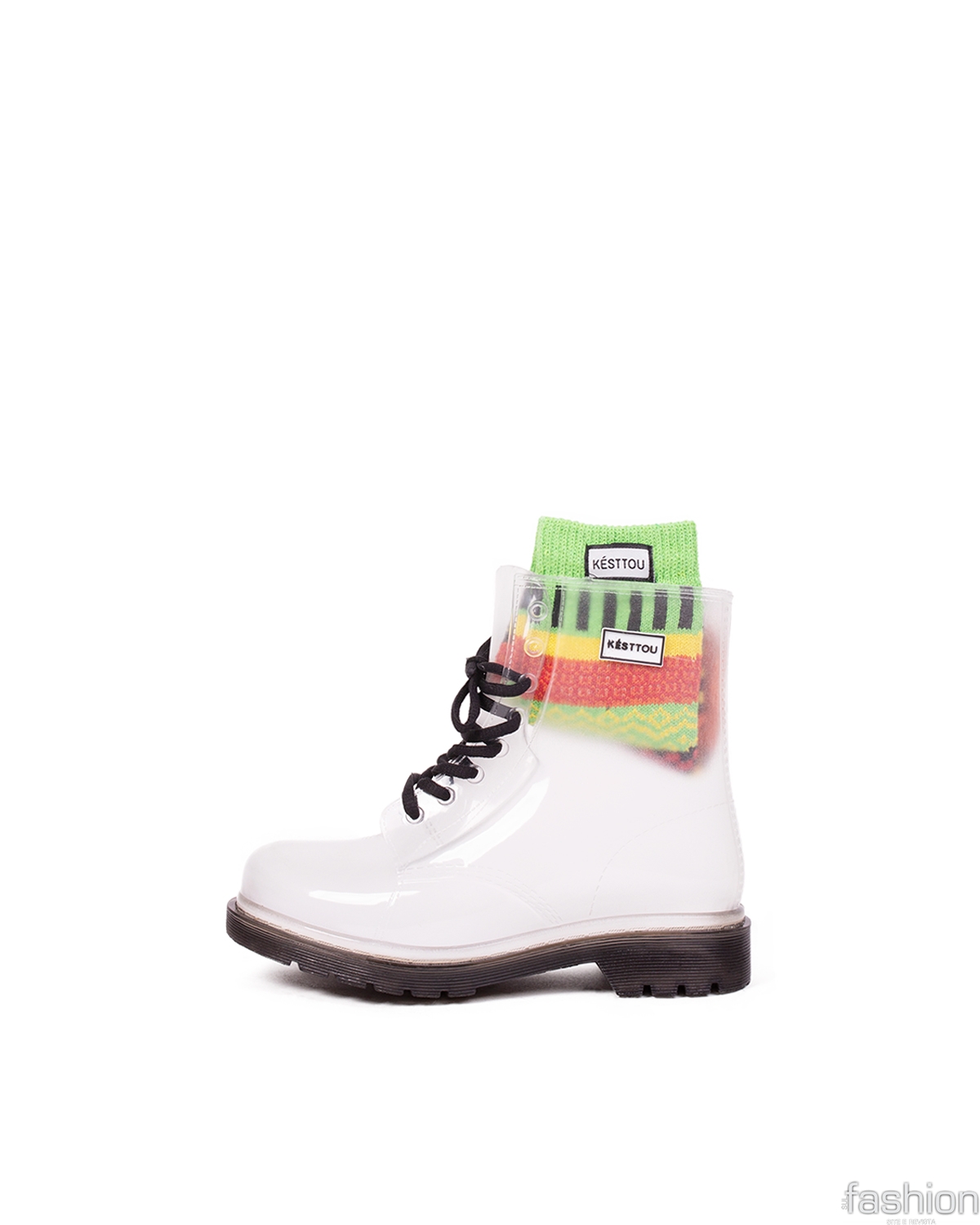Os favoritos do mix da marca de fashion boots e galochas são icônicos coturnos transparentes, que trazem a rebeldia característica do modelo aliada ao futurismo da transparência. Ideais para ousar na hora de compor um visual ousado e ultracool, eles podem ser usados deixando a pele à mostra ou acompanhados por meias divertidas e irreverentes, como as opções multicoloridas exclusivas que acompanham o produto, assim como as versões com glitter e arrastão que estão super em alta na cena fashion.