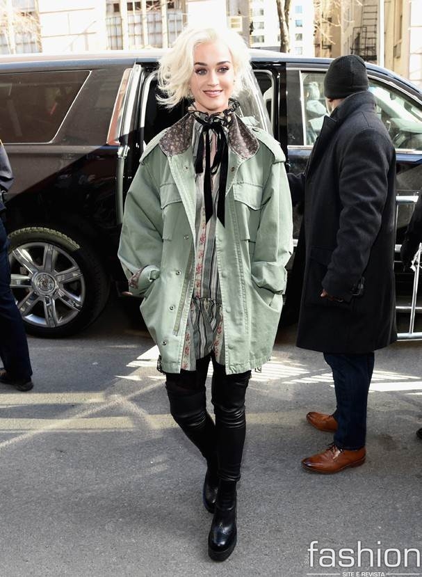 O contraste de tecidos também chama atenção nessa nova onda do militar. As jaquetas, parcas e casacos estilo army normalmente são mais pesadonas, grossas. Tem jeito melhor de equilibrar do que apostando em um tule ou malha bem fininha, com estampa mais girly?