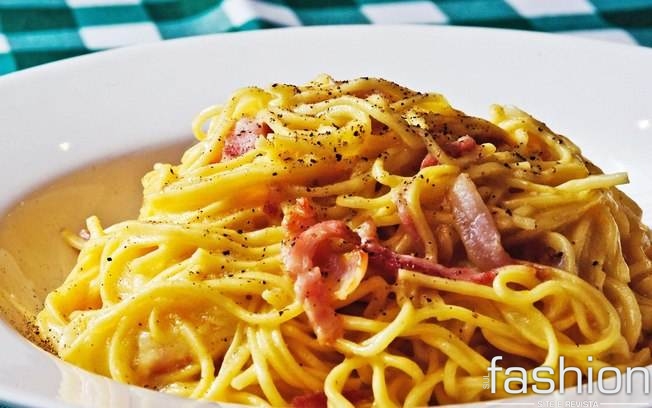 5. Com cuidado, despeje o macarrão cozido em um escorredor. A seguir, transfira o fettuccine para a tigela com a mistura de creme de leite e ovos. Acrescente os cubos de bacon e o refogado de cebola, alho e pimenta e misture muito bem. O calor do macarrão irá cozinhar o molho.