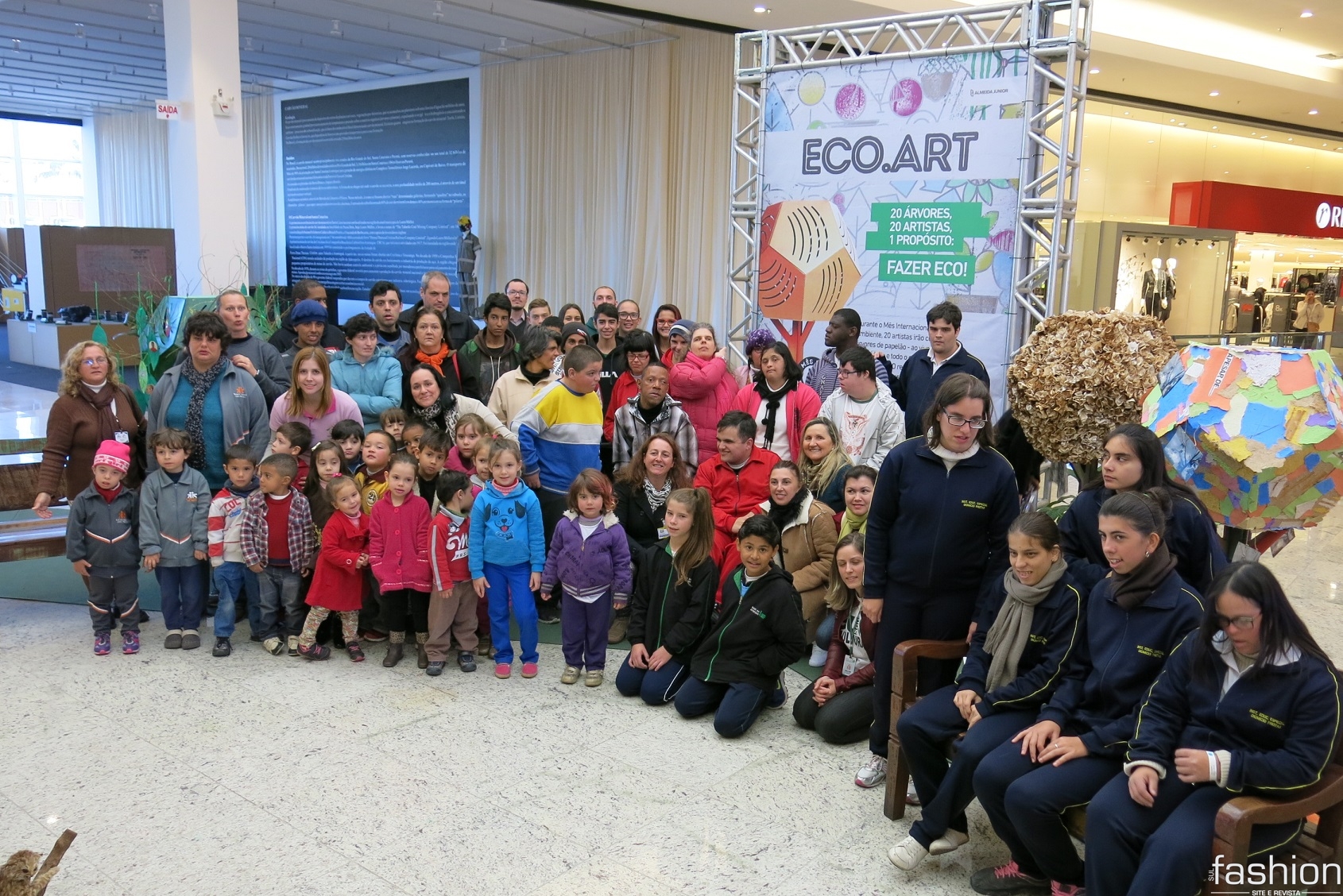 Após o empenho individual de customizar sua própria árvore de papelão cada instituição participante do projeto Eco.Art do Nações Shopping pôde conferir o resultado de maneira coletiva. Na tarde de segunda-feira (20) cerca de 60 pessoas entre diretores de escola, professores e crianças atendidas, participaram do encontro que iniciou na Praça de Eventos e seguiu para o parque da Galinha Pintadinha. Participam do projeto Eco.Art: Abadeus, Bairro da Juventude, AMA, Diomício Freitas, Apae, Casa Guido, Afasc, Nossa Casa e Multiplicando Talentos. Entre as instituições de ensino estão Unisul, Unesc, Satc, Esucri e Unibave além do artista Eduardo Evangelista. Ao todo, vinte árvores de papelão foram customizadas artisticamente com o objetivo de chamar a atenção da população para questões ambientais importantes, como a preservação de recursos naturais – através da arte, que encanta, e também educa.