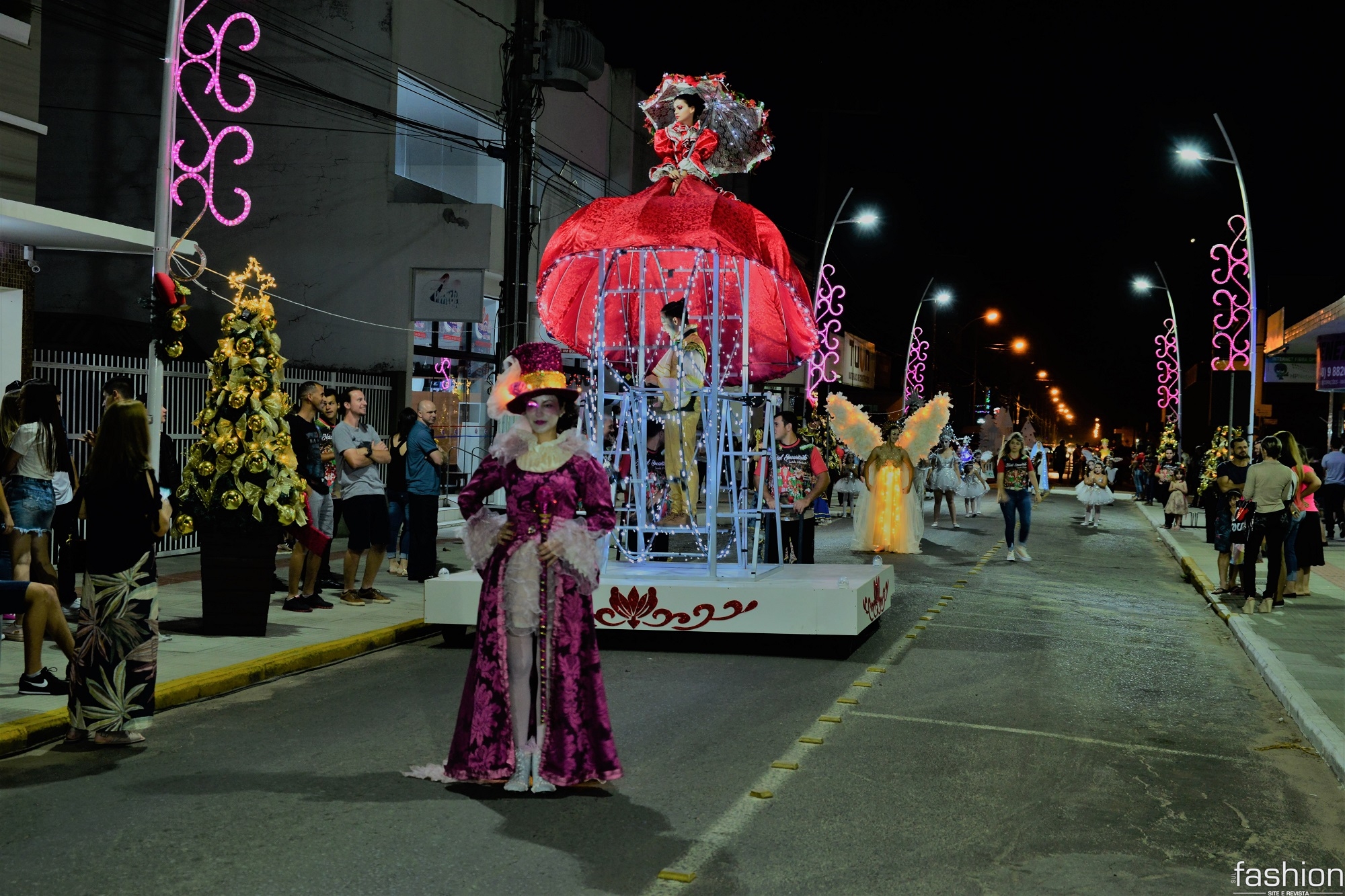 Após o acender das luzes, chegou a vez de uma das principais atrações da noite: o desfile. E o 1º Desfile Natalino de Jacinto Machado foi, sem dúvidas, um dos momentos mais emocionantes da festa. Com um figurino impecável e luzes que incrementavam a magia, os componentes saíram do Calçadão até a Rua Coberta. Lá o Papai Noel, acompanhado da Mamãe Noel e do Menino Jesus, subiram ao palco e encantaram a todos os presentes.